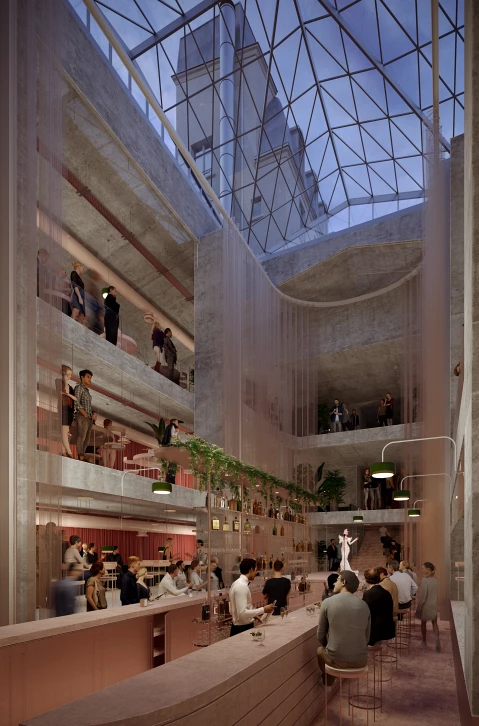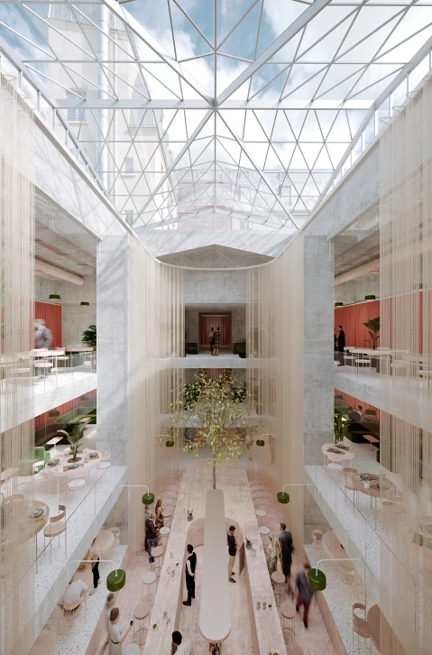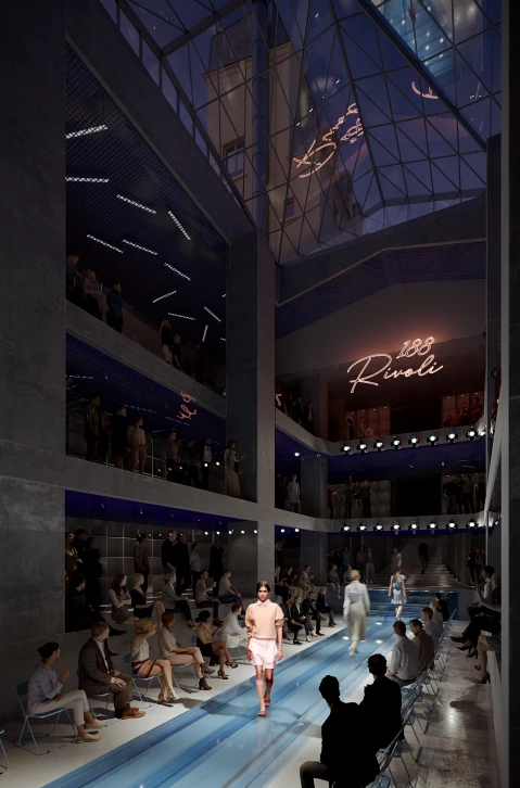 Cette restructuration assume son caractère pleinement contemporain dans un contexte historique remarquable, offrant une deuxième vie à ce lieu singulier en plein cœur de Paris.